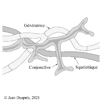 Type d’hyphe très ramifiée, non septée, à paroi épaisse et jouant un rôle liant dans une structure trimitique.