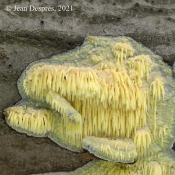 Champignon en forme de croûte résupiné, de consistance membraneuse, cireuse ou plus ou moins molle, à surface composée à maturité d’aiguillons, de dents aplaties ou plus rarement de fines pointes obtuses, visibles à la loupe.